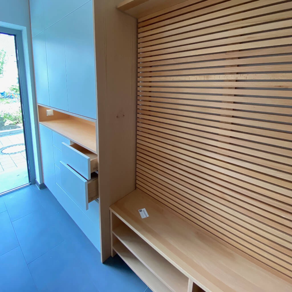 Werfen Sie einen Blick in die Werkstatt der Schreinerei Holzflair aus Untermeitingen bei Augsburg & entdecken Sie unsere aktuellen Möbelbau- und Innenausbau-Projekte.
